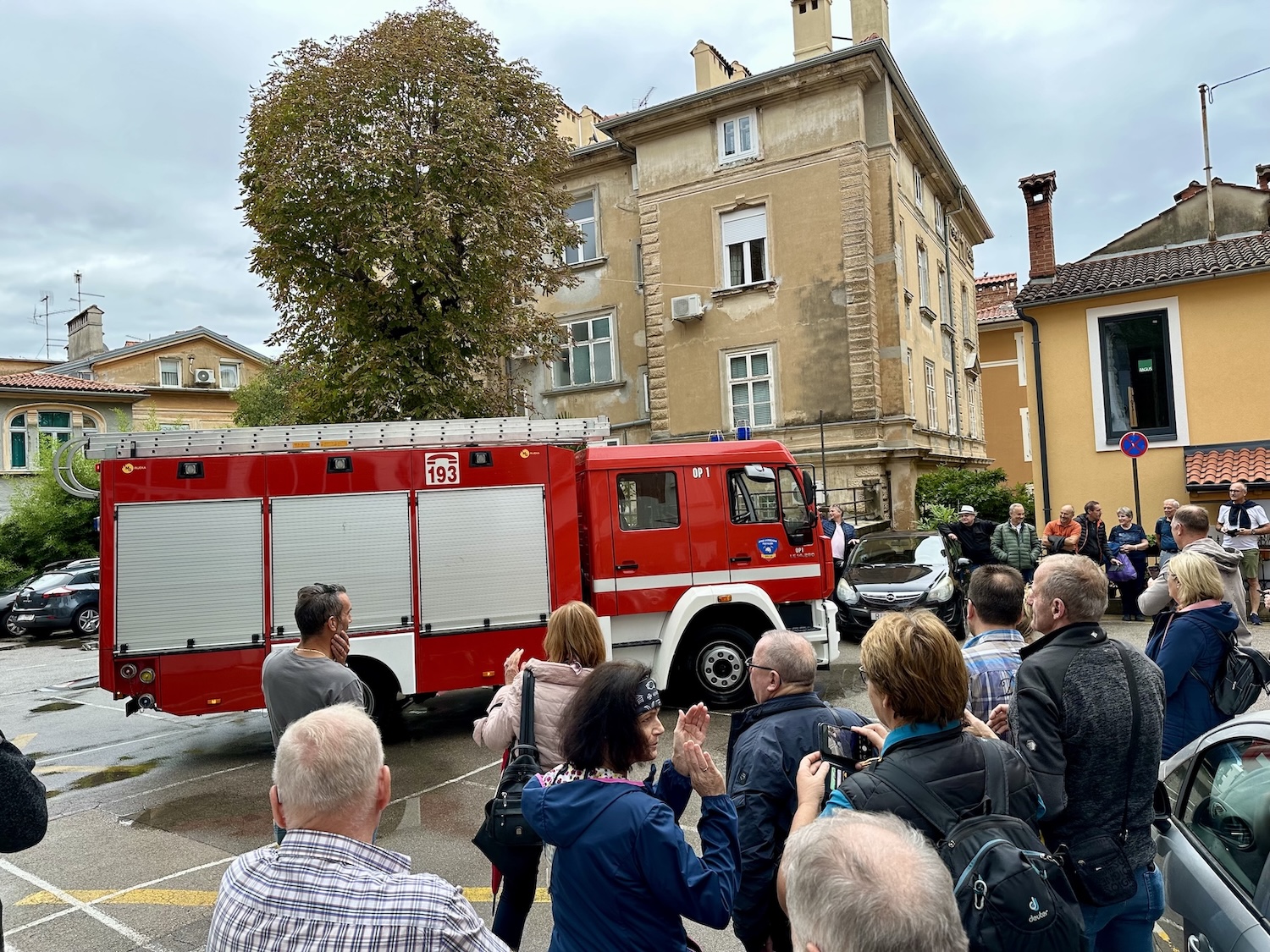 U opatijskom Vatrogasnom domu dočekali su ih zapovjednik JVP-a Opatija Igor Ravnić, predsjednik DVD-a OpatijaMladen Šćulac, potpredsjednik René-Raymond Gulin, tajnik Damir Trinajstić, dugogodišnji član Petar Piero Pobar i, naravno, dežurna smjena JVP-a.