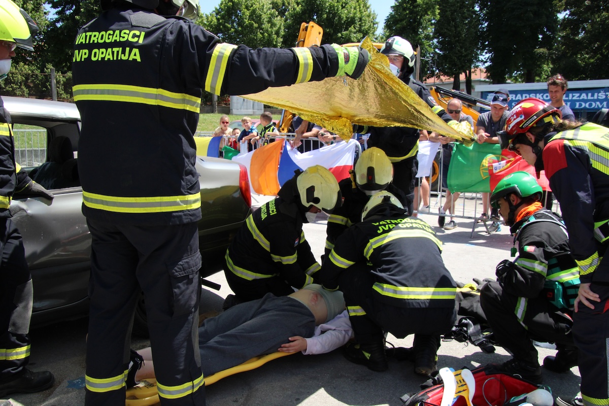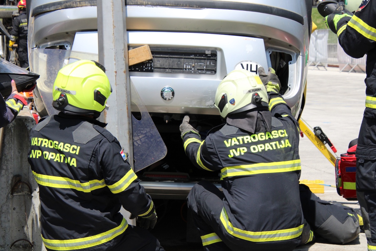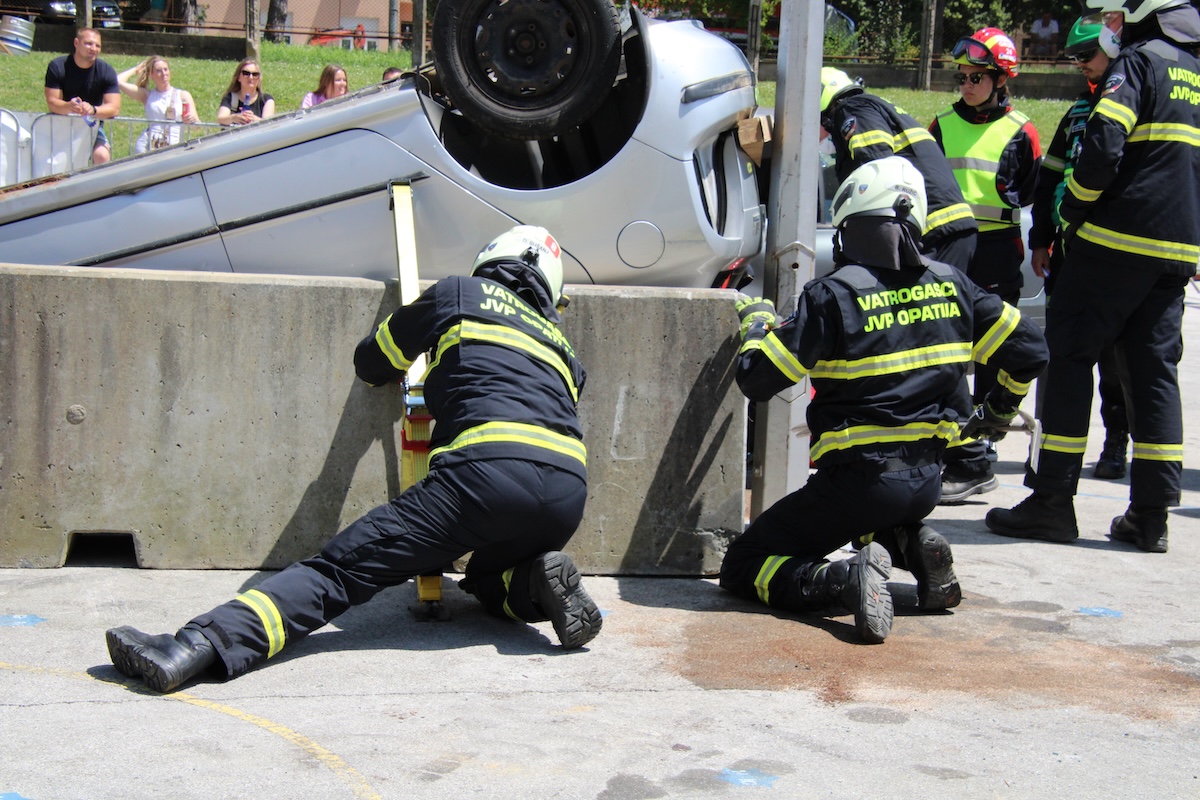 Opatijce je ovoga puta dopao zahtjevan scenarij prometne nesreće u kojoj su sudjelovala dva osobna automobila, od kojih je onaj u kojem se nalazila “žrtva” bio preokrenut na krov. Pristup tom automobili priječio je s jedne strane drugi osobni automobil, a s druge strane jersey barijera, te sa strašnje strane stup javne rasvjete.